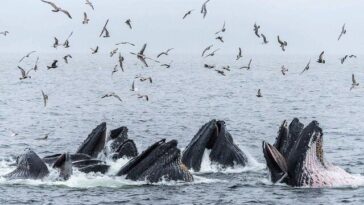 We can relate to these hungry marine animals stuffing their faces.