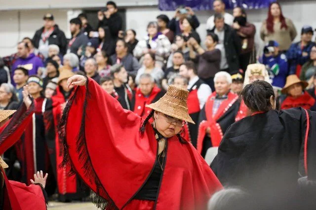 In addition to hereditary chiefs, there were local dignitaries present as well, including Tamara Davidson (Laanas), the first Indigenous woman to serve as Member of the Legislative Assembly (MLA) for North Coast-Haida Gwaii.