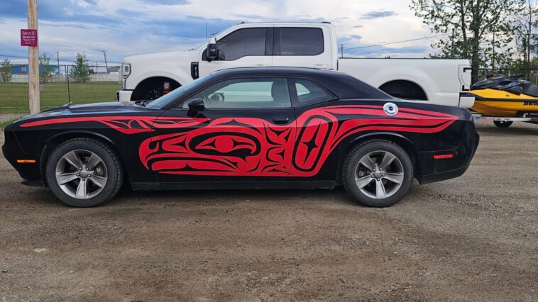 Dan Prince has owned his Dodge Challenger since 2021, and it has a black exterior adorned with First Nations decals.